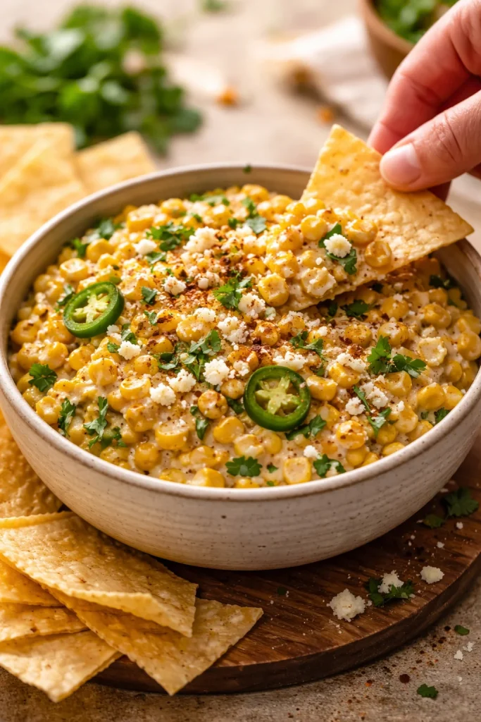 - Use fresh or properly thawed corn for the best texture; canned corn is softer and may water down the dip.